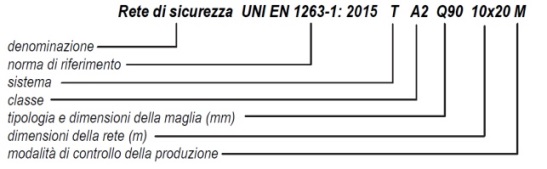 La marcatura di una rete di sicurezza conforme alla UNI EN 1263 deve riportare le seguenti indicazioni: